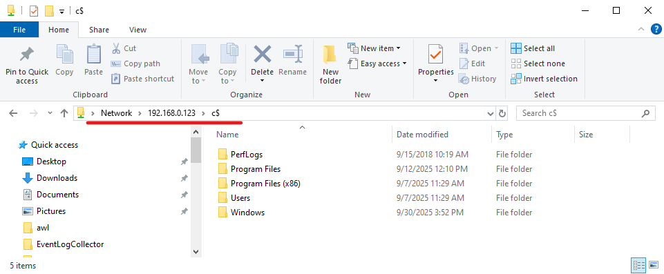 PS C:\> net use \\192.168.0.123\IPC$ /user:my.local\administrator 1234@abc