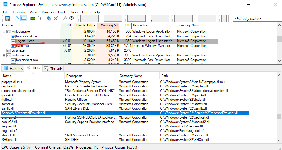 DLL was loaded into LogonUI.exe: